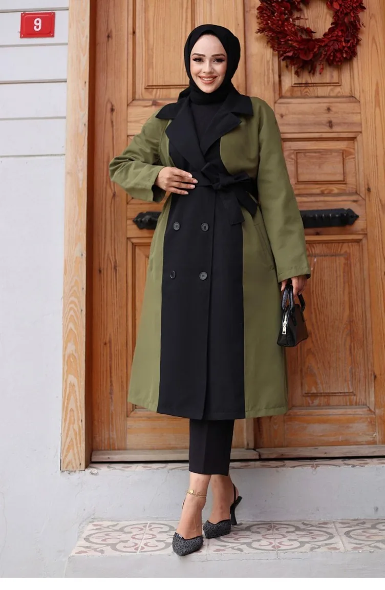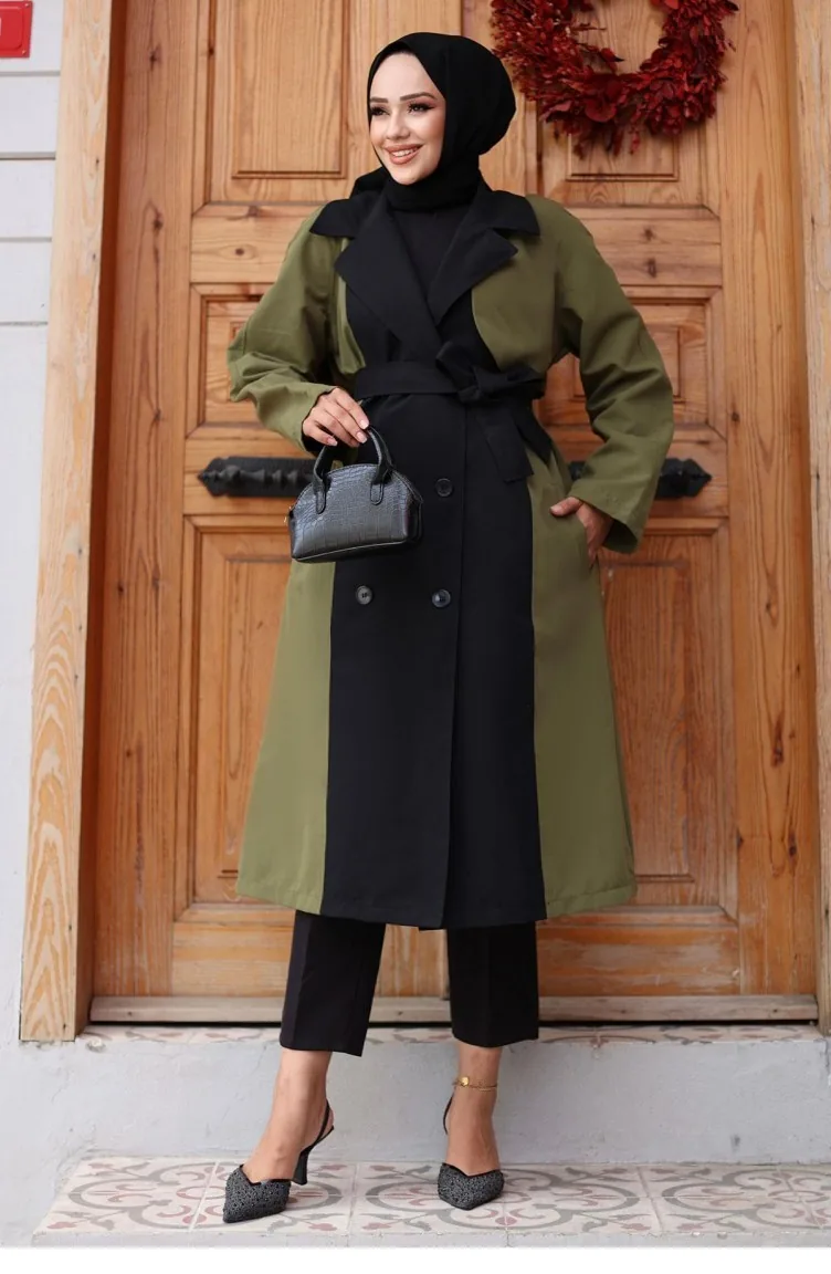 Önü Garnili Trençkot Haki 4434