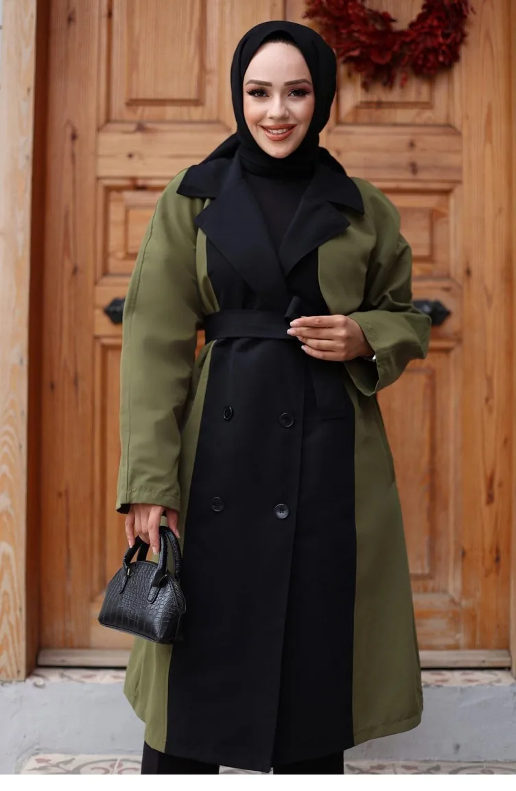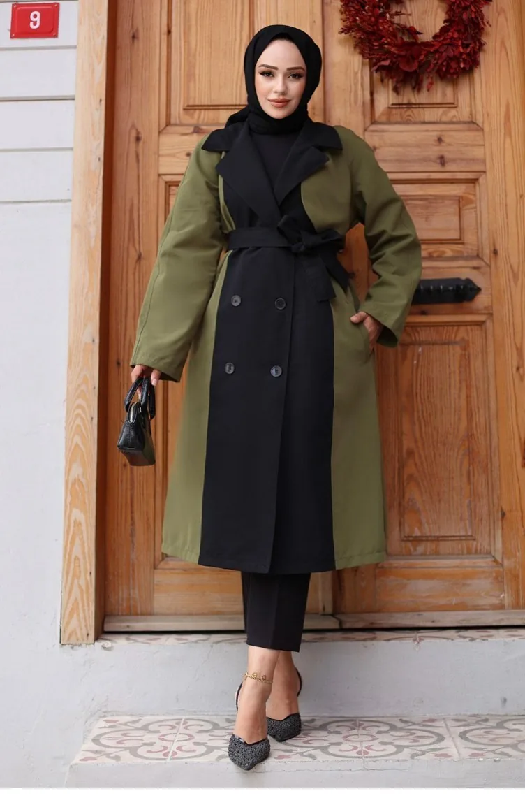 Haki renktedir. Polyester kumaş. Sade. Kışlık. Büyük beden seçeneği mevcuttur.