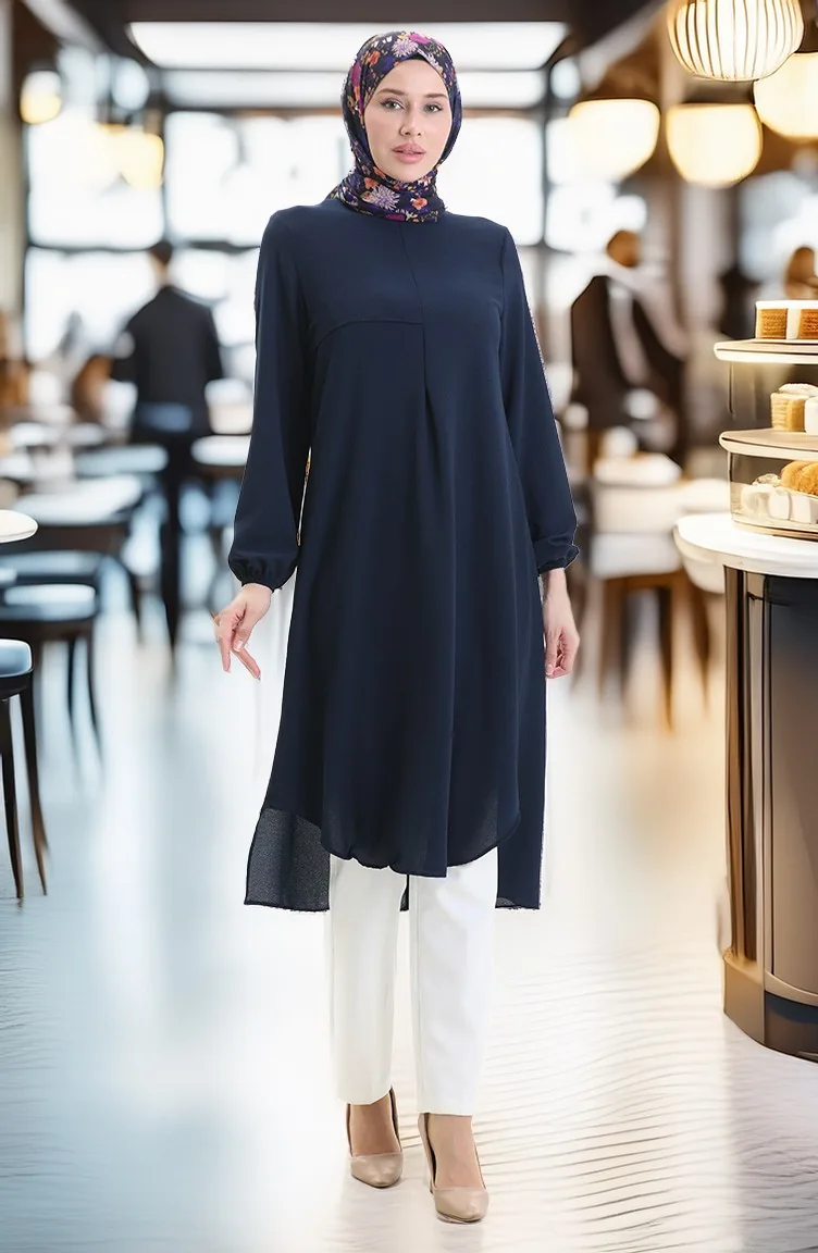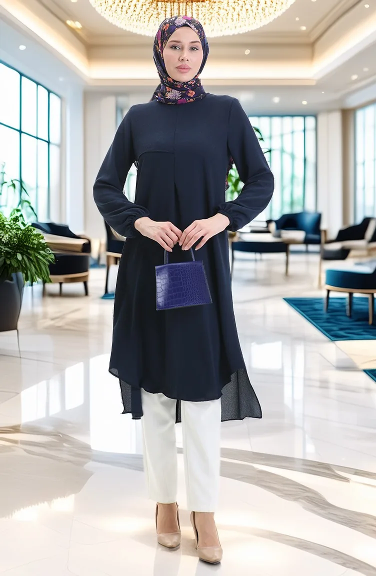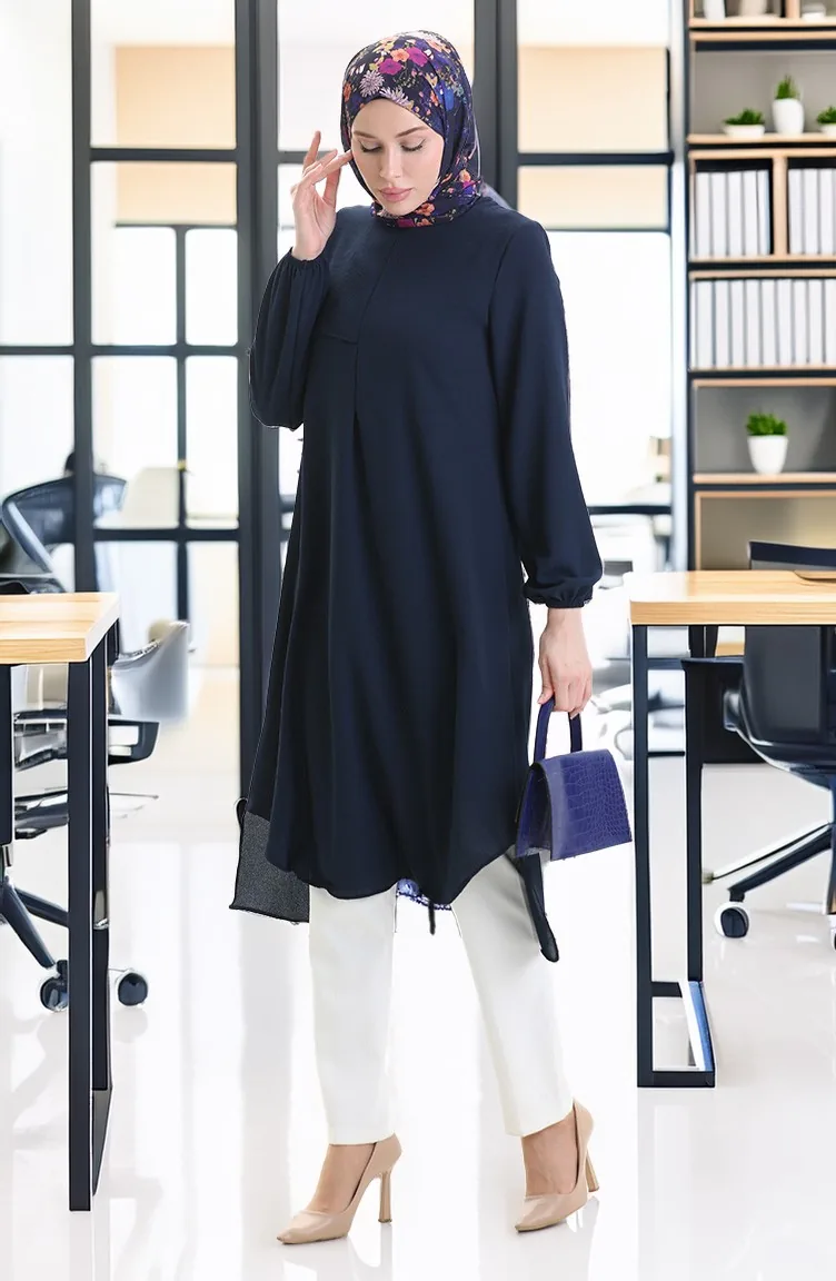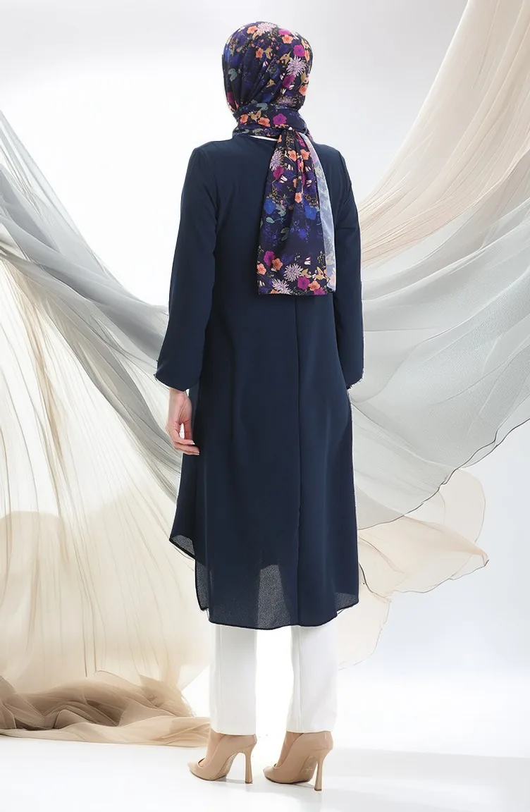 Çerçeve Detaylı Uzun Tunik 4105-07 Lacivert