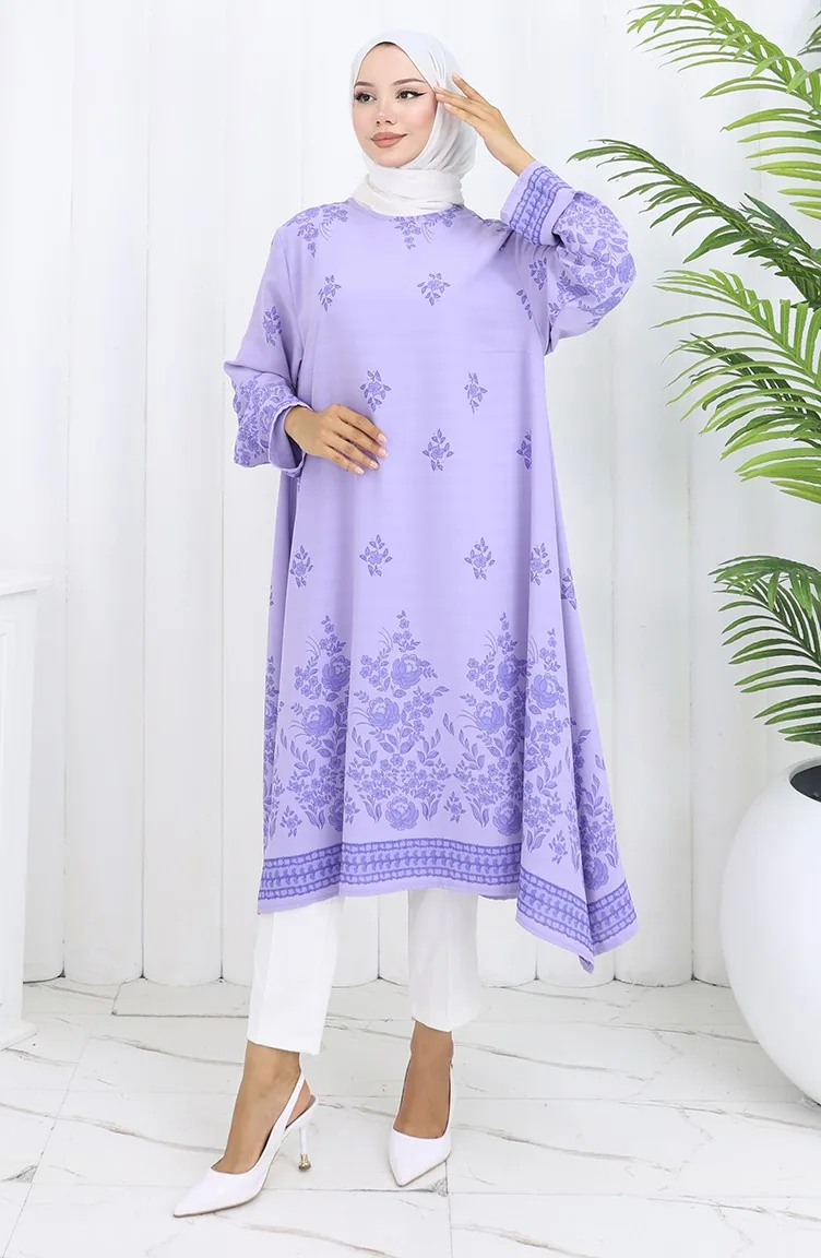 Desenli Tunik 1012-01 Lila