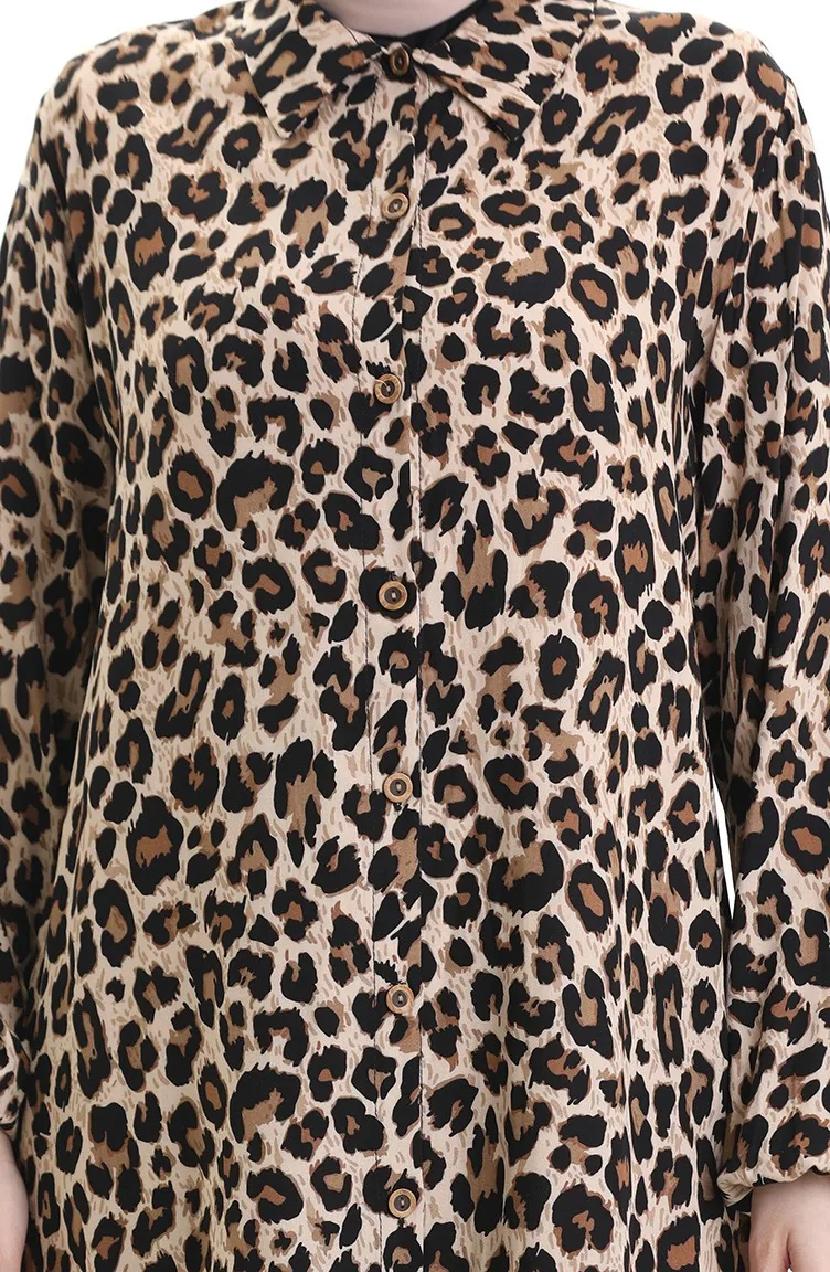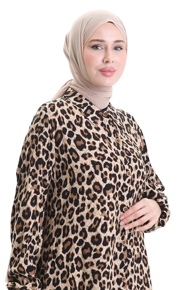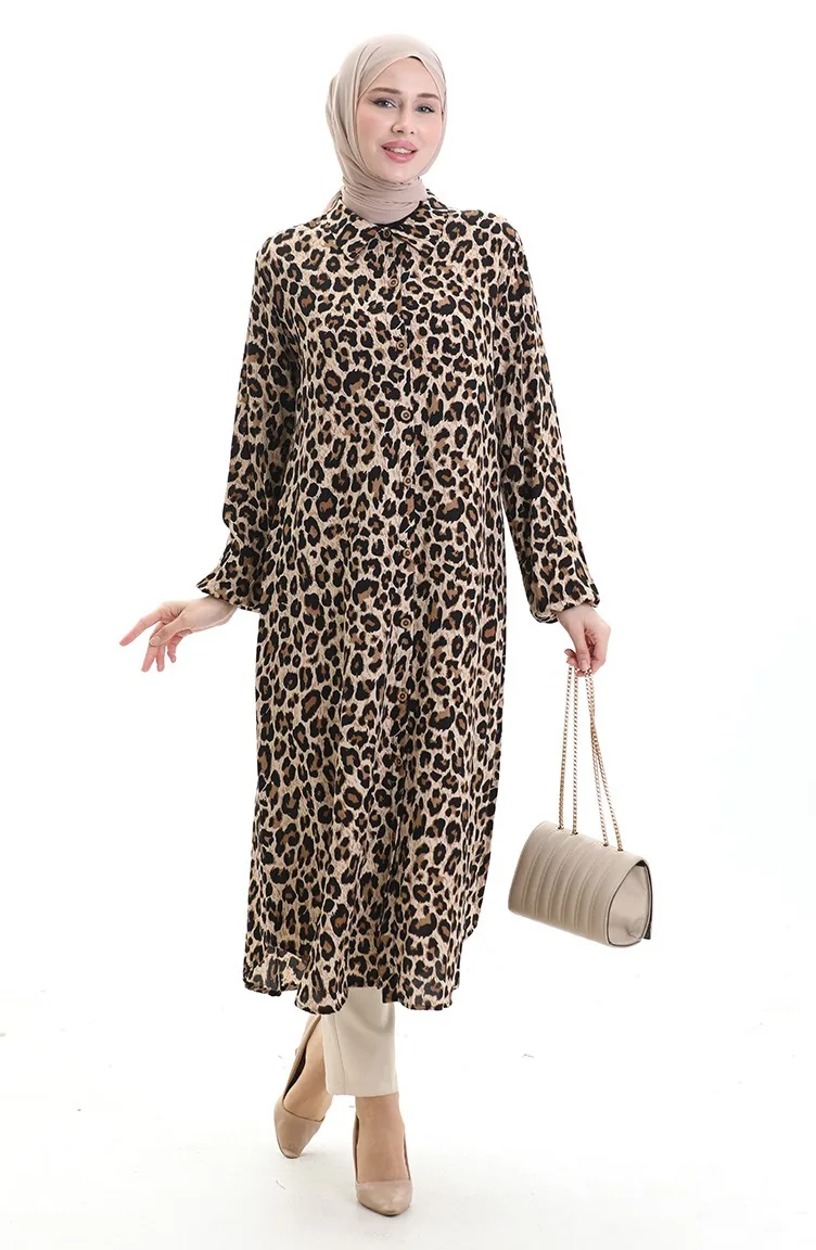 Leopar Desenli Uzun Tunik 0093-01 Kahverengi