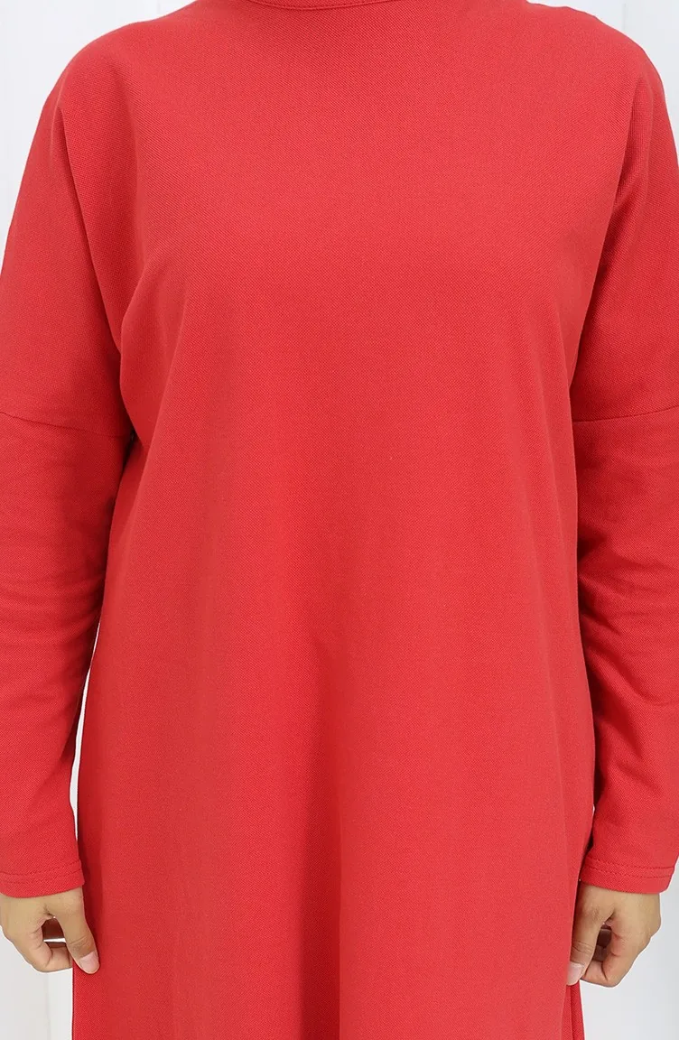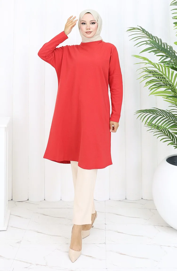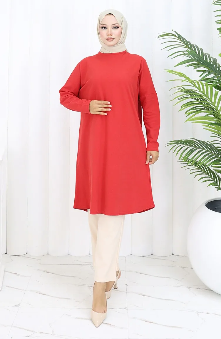 Rahat Kesim Cotton Sade Tunik 8757-01 Kırmızı