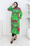 Yeşil renktedir. Viskon kumaş. Desenli kumaş. Düğmeli. Lastik kollu. Hakim yaka detayı ile kullanışlı modeldir. 4 Mevsim tercih edebilirsiniz. Standart.