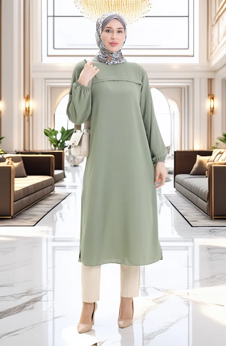 Yandan Yırtmaçlı Uzun Tunik 4104-03 Haki