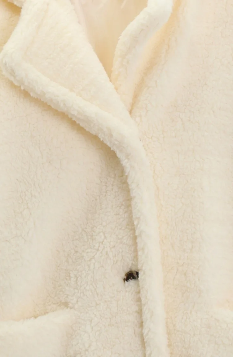 Düğmeli Cepli Peluş Ceket 6342-02 Krem