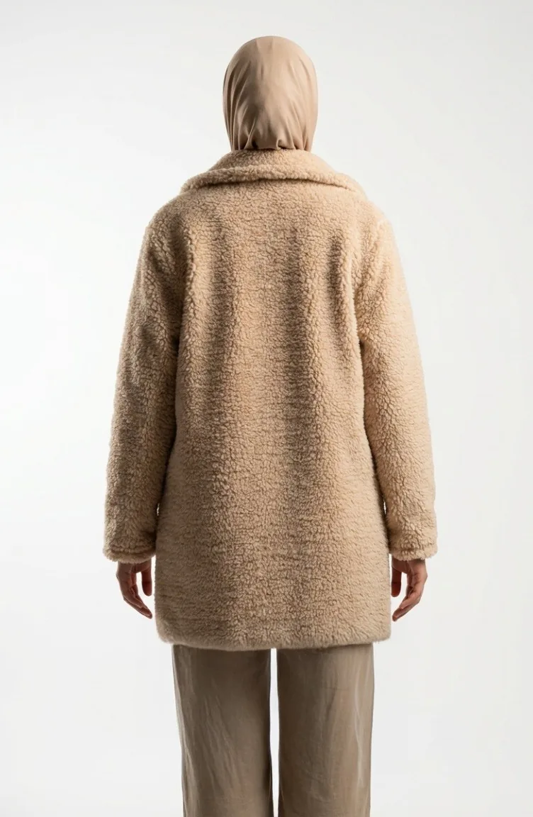 Düğmeli Cepli Peluş Ceket 6342-03 Vizon