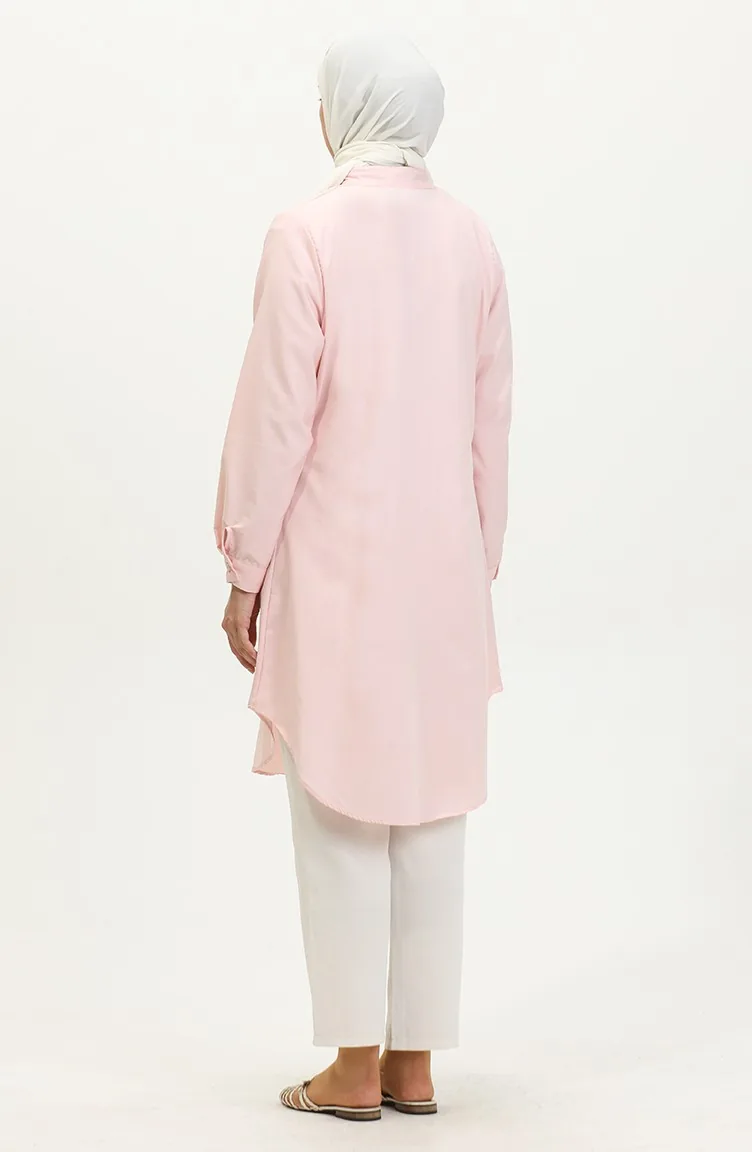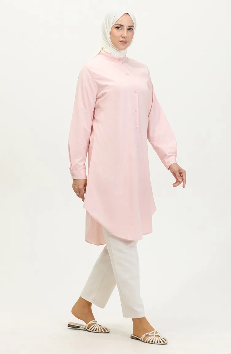 Hakim Yaka Düğmeli Tunik 6112-03 Pudra
