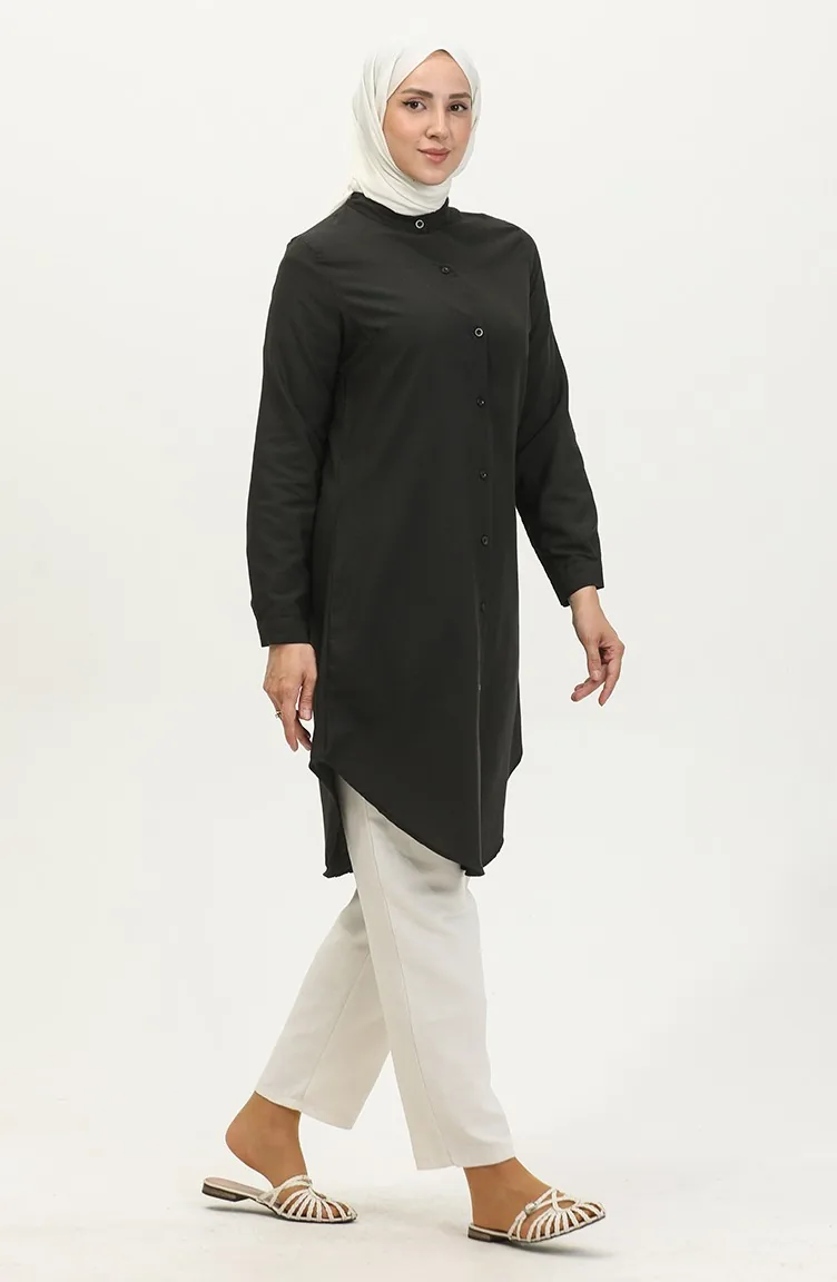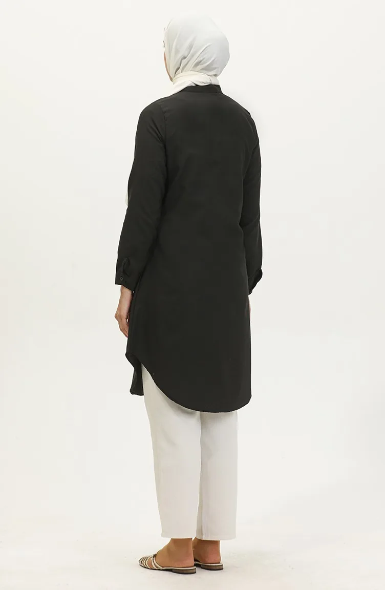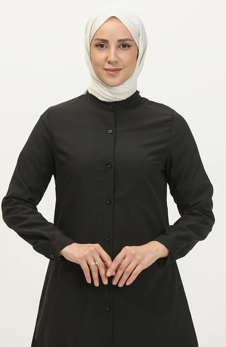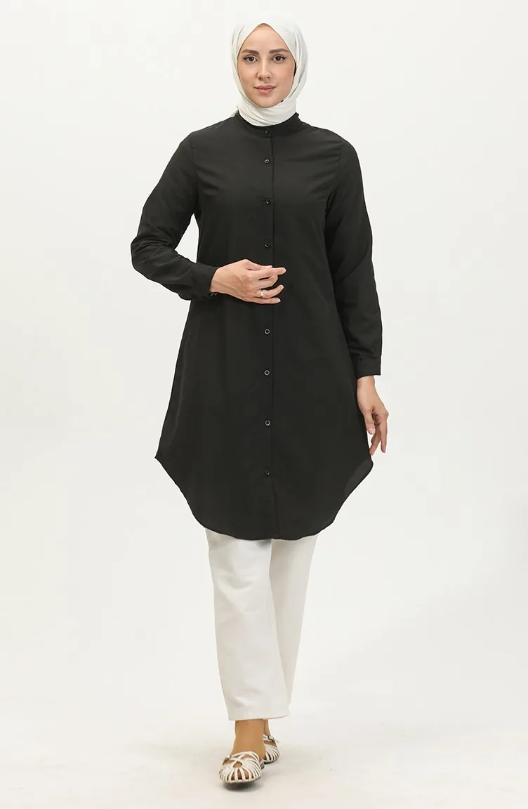 Hakim Yaka Düğmeli Tunik 6112-10 Siyah