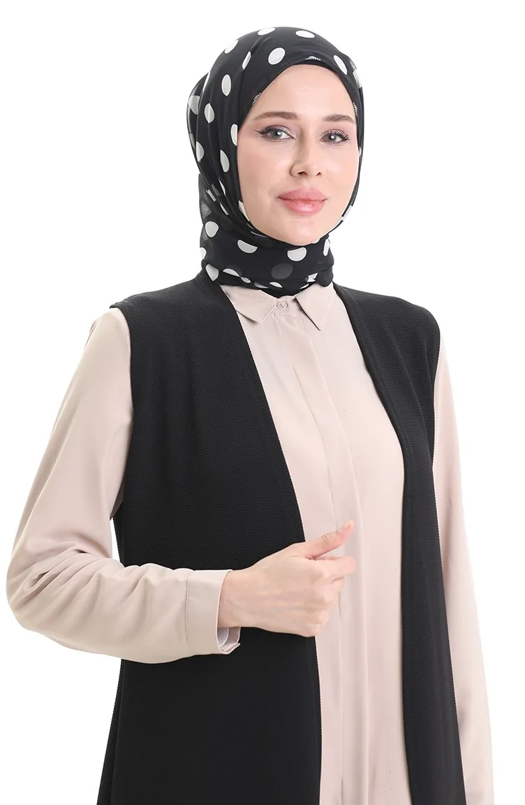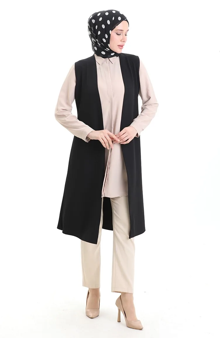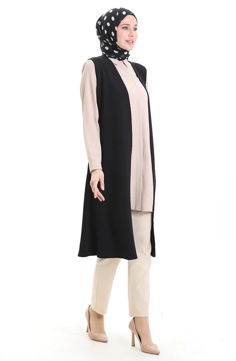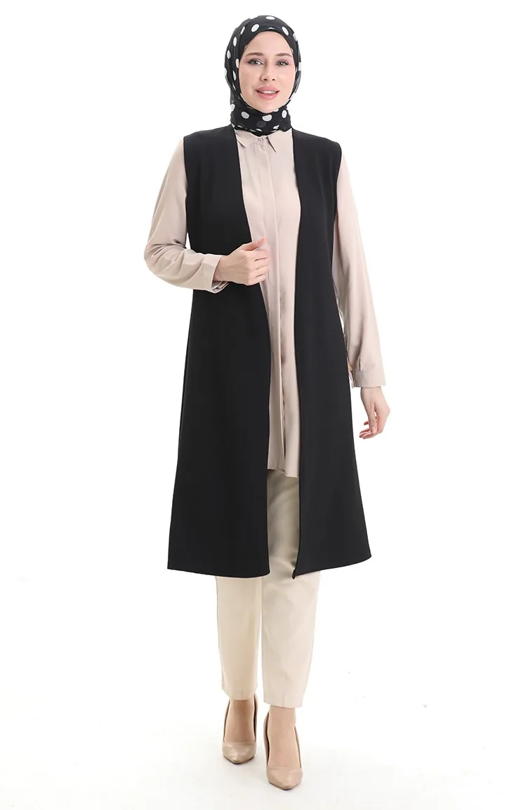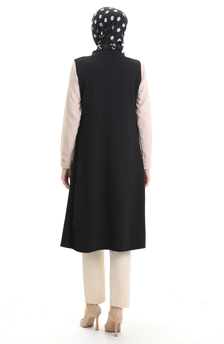 Mevsimlik Uzun Basic Yelek Büyük Beden Anne Yelek 8747A-01 Siyah