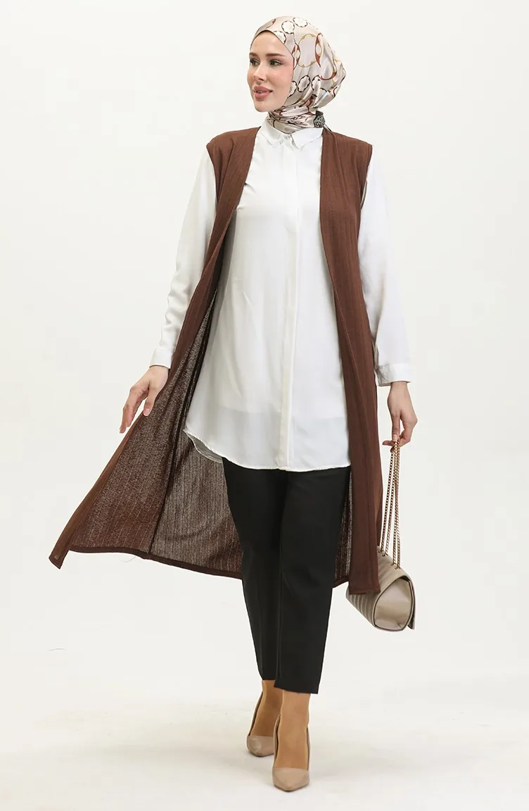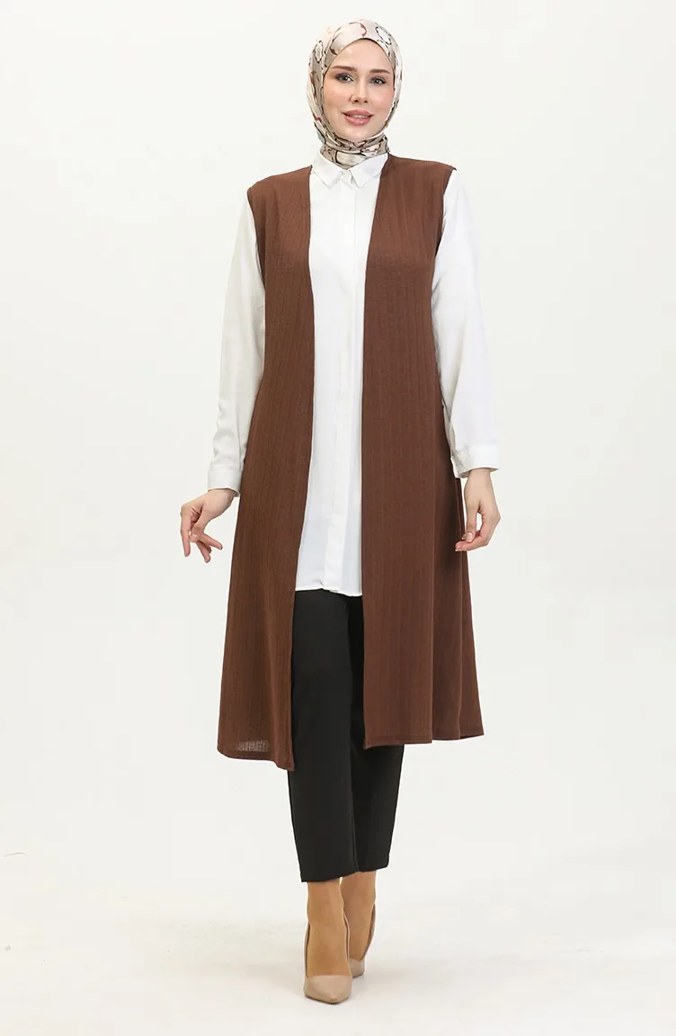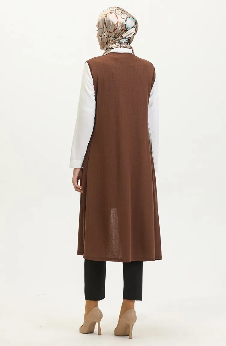 Sade Dökümlü Uzun Yelek 8726-05 Kahverengi